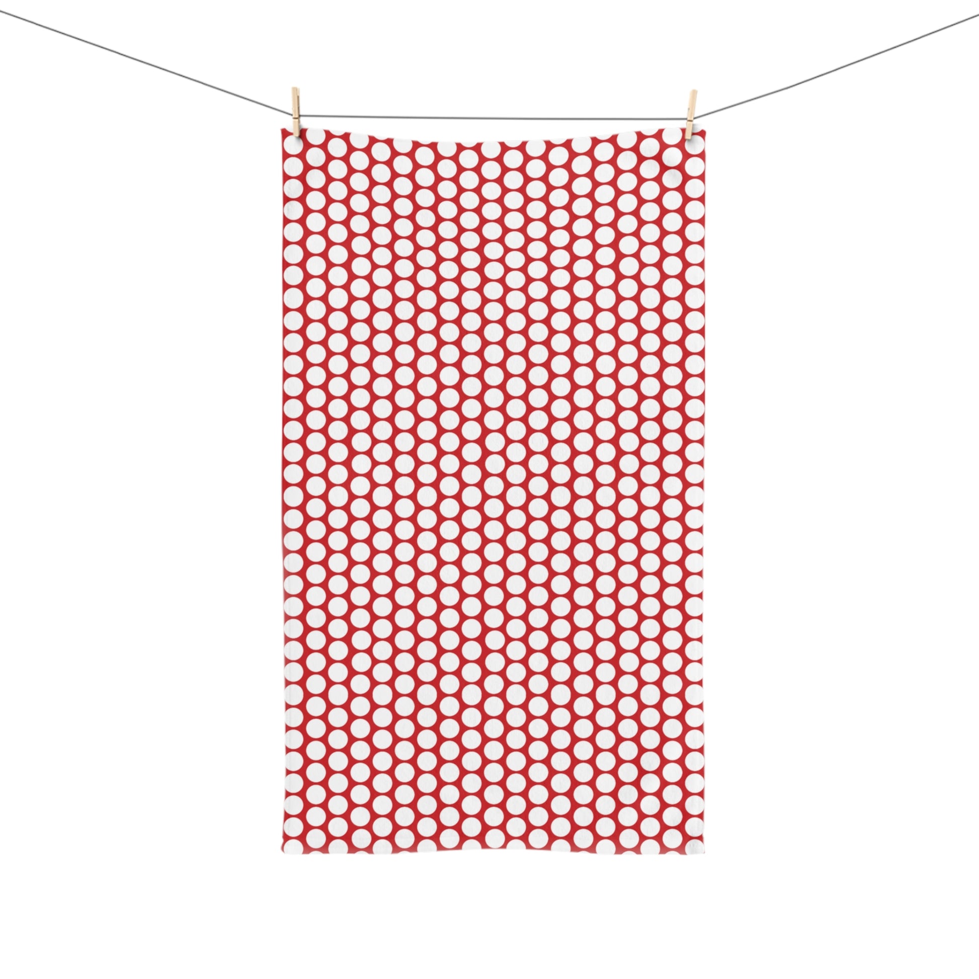 White Polka Dot on Red Holiday Hand Towel | Soft Cotton Back, Polyester Front, Festive Home Décor
