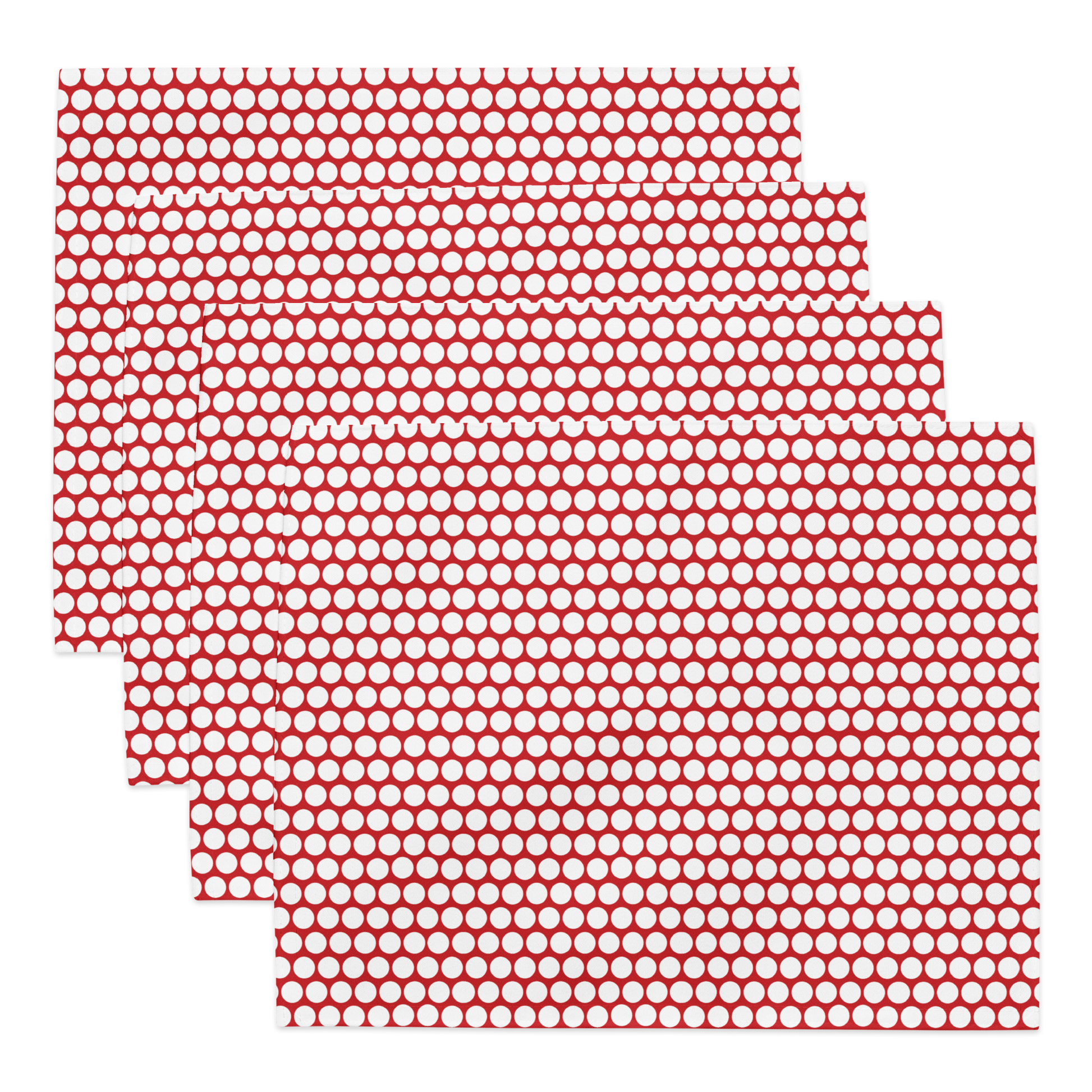 Celebrate big with White Polka Dot on Red Polyester Placemats. Bright, bold, and endlessly festive, these placemats are the cheeky detail your Christmas table needs. Designed to coordinate with runners + napkins for the ultimate holiday set.